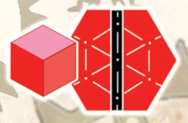 | ❶ | 全体準備 ゲームマップをテーブル中央に配置し、その横にゲームボードを配置します。 線路タイル6枚をシャッフルし、裏向きで配置します。 袋からランダムにキューブを引き、各線路タイルのマスに配置します。 |