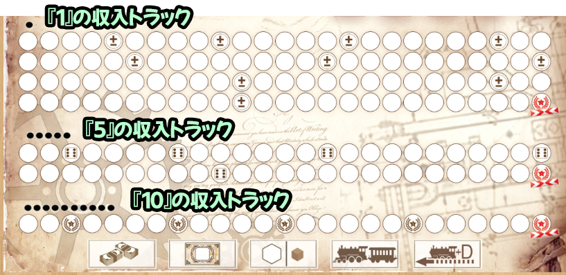 収入はプレイヤーボードの収入トラックに記入します。