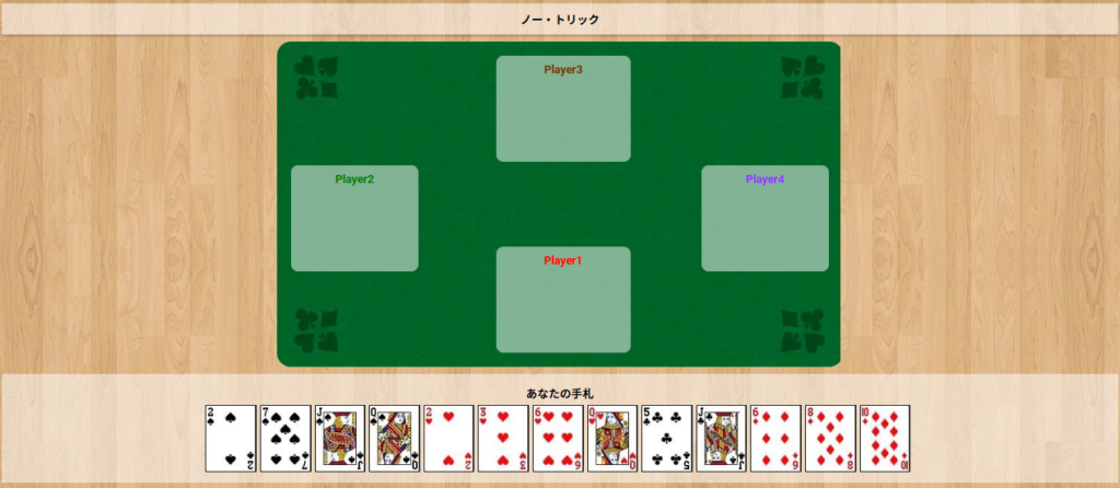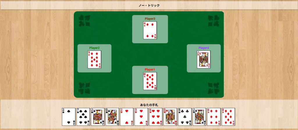 手札を全て出し切るまで、以下の流れでトリックテイキングを行います。