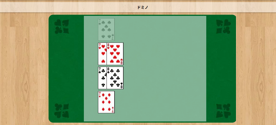 | 最初に出せるのはそれぞれのスートで最も弱い数字(通常は2、たまに3)で、場に出ているカードより1大きい数字の同じスートが出せます。 Aを出すとさらにもう1枚出せて、どれもなければパスします。 |