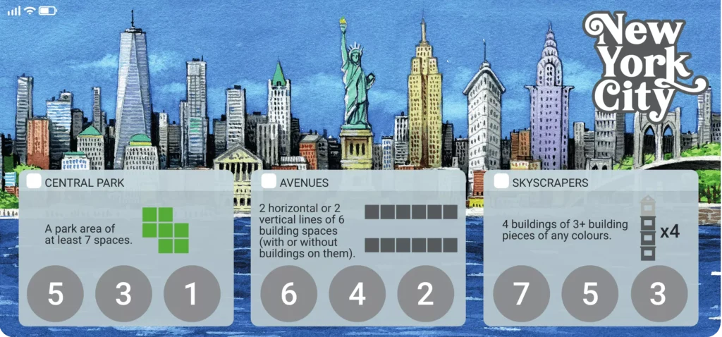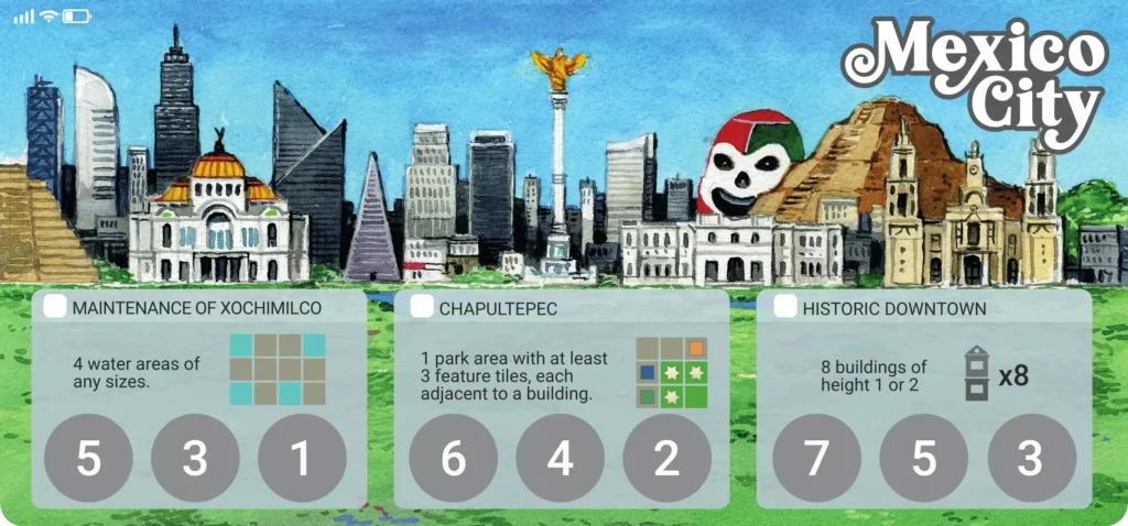 『シティーズ』の目的は、理想的な都市を築き、最も多くの勝利点を獲得することです。