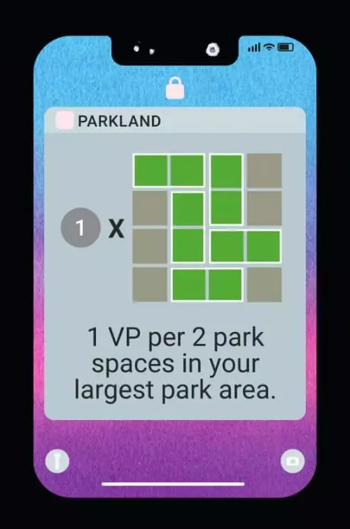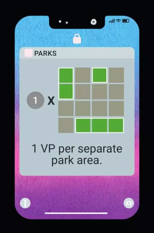 隣接する公園スペース内に1/2/3/4種類の特徴タイルに対して1/3/6/10点を獲得できます。