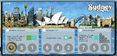 都市実績ボードから1つを選び、ゲームボード上部の指定スペースにセットします。
