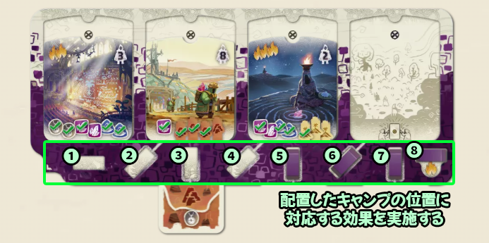 キャンプを配置した後、部族ボード上でキャンプを取った位置に対応する効果を解決します。