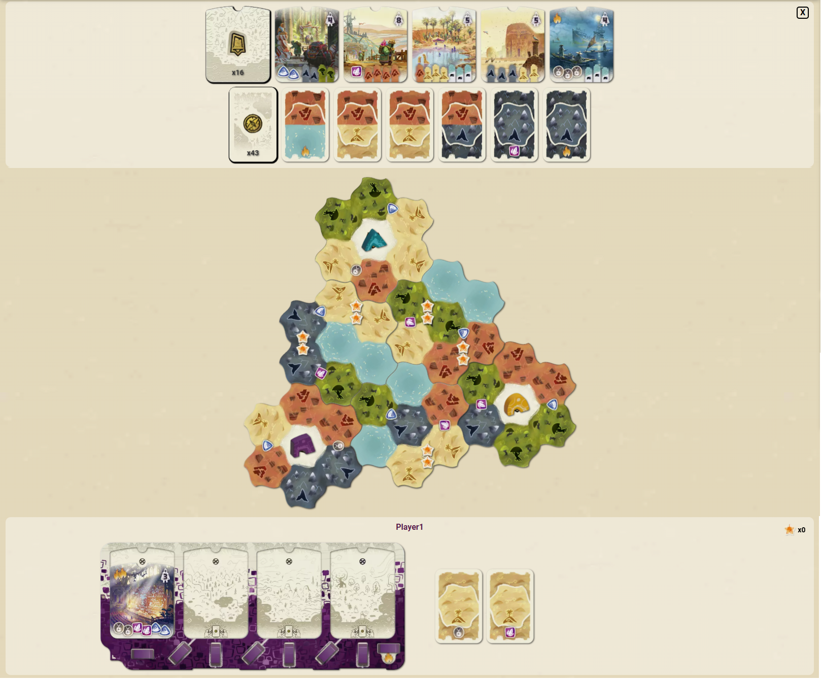 地形カードを支払い、自分の部族ボード上で一番左にあるキャンプを1個取り、選択したマスに配置します。
