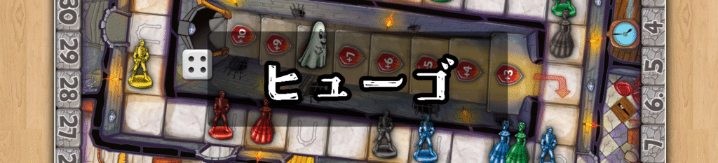 『ヒューゴ』は、おばけ「ヒューゴ」から逃げるスリル満点のすごろく系ボードゲームです。