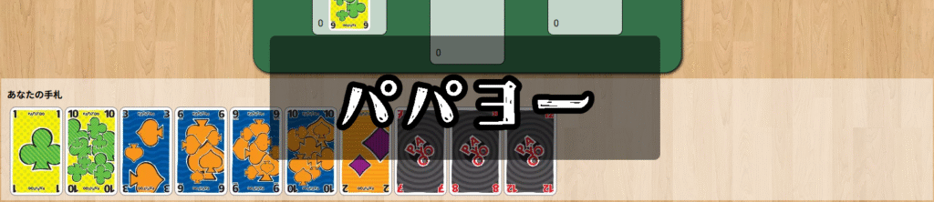 ラウンドごとに親が出したスートに従ってカードを出し、最も強いカードを出した人が場を取りますが、取ったカードの中に「パヨー」や「パパヨー」が含まれていると失点になります。