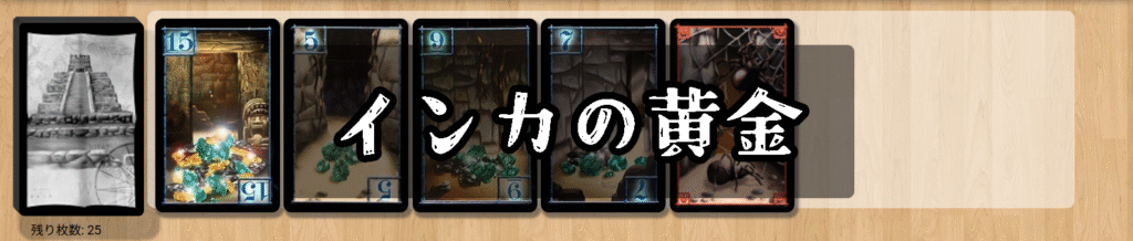 『インカの黄金』は、“チキンレース型”の冒険ボードゲームで、プレイヤーは探検隊の一員となり、遺跡の奥へ進んで宝石を集めます。