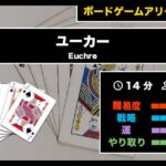 ユーカー(Euchre)はトランプの内、A、K、Q、J、10、9を使用した24枚のカードを使用した、4人用のトリックテイキングカードゲームになります。