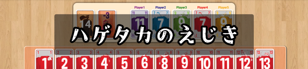 『ハゲタカのえじき』は、2〜5人で遊べるシンプルなバッティングゲームです。