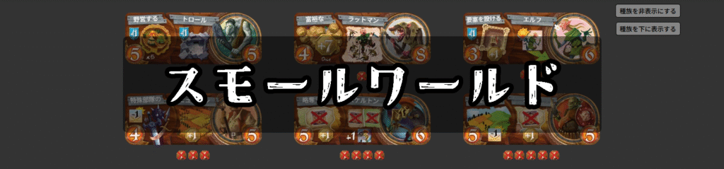 『スモールワールド』は、個性的な種族を使って領土を奪い合うエリア支配型ボードゲームです。