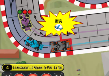 移動後、自分の車が他のプレイヤーの車の横または後ろのマスに停止した場合、衝突判定を行います。
