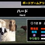 『Herd』は、2人のプレイヤーが2つの標準的な6面ダイスと無制限の黒と白のストーンを使い、初期状態で空の任意サイズの六角形のグリッドで行うゲームです。