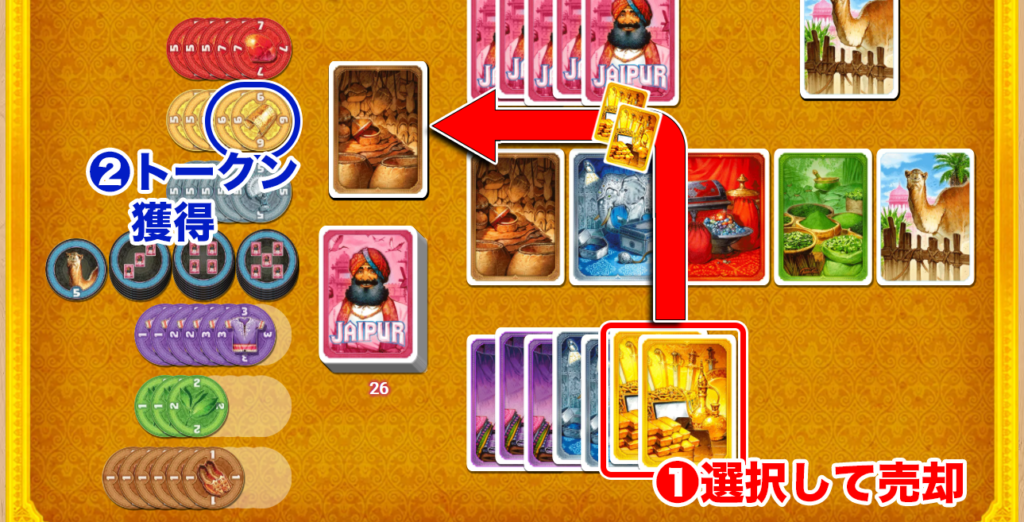 手札の『商品カード』を売って『トークン』を獲得する