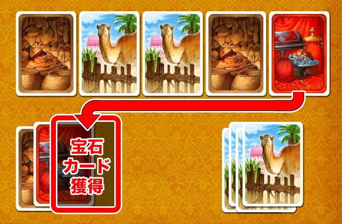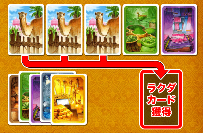 場にある『ラクダカード』を全て取って、手札に加えます。