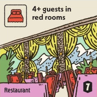 場に公開されている4人のゲストが、同じ色の部屋条件を持っている場合、それらを全て袋に戻し、新しく4人のゲストを引き直すことができます。