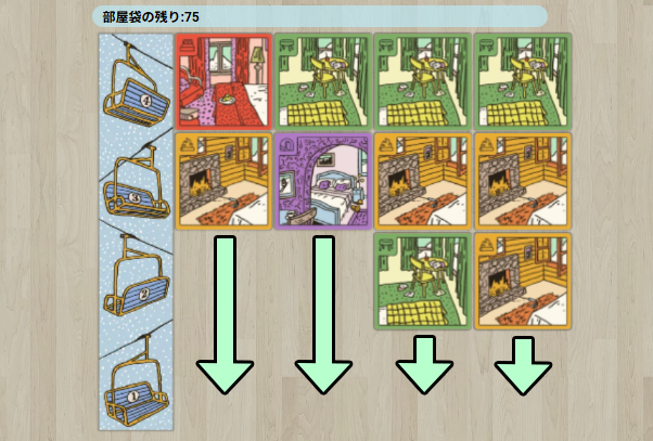 リフレッシュが発生したら、場の部屋タイルをすべて真下にスライドさせて空きを埋めます。