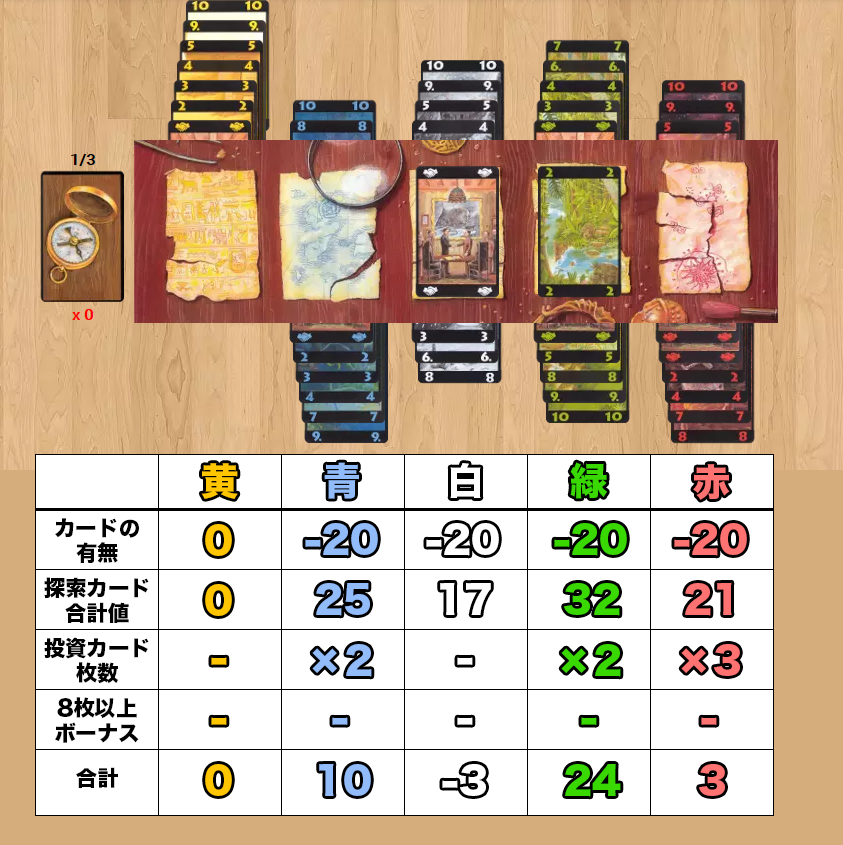 - 『投資カード』は『探索カード』を出してからは置けません。