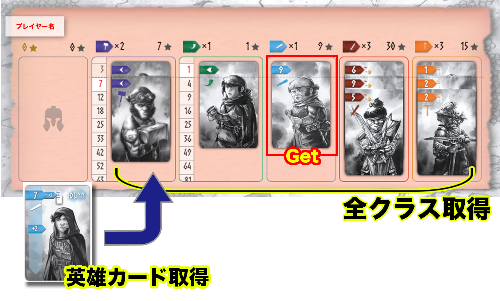 各英雄は1枚ずつしかなく、早いもの勝ちなので取得したい英雄がいるなら早めに全クラスを揃えていきましょう!