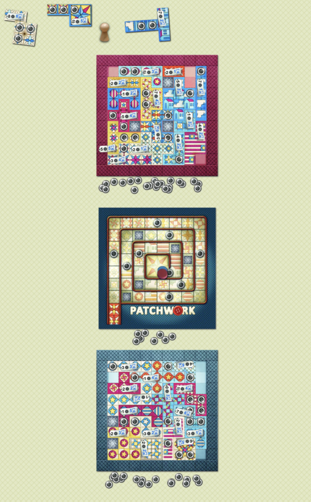 そのためにも場に置かれているパッチタイルを上手く獲得するように、相手との駆け引きが重要になってきます。