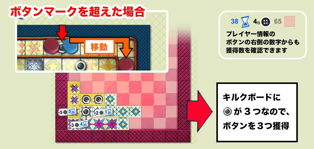 進めたマスの数分、ボタンタイルを獲得する。