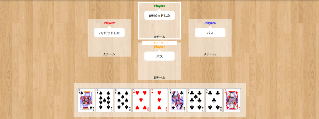 ビッドフェーズ各プレイヤーが入札または棄権する