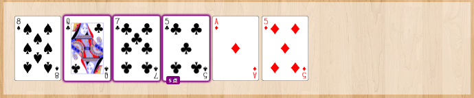 6枚を超えるトランプを持っている場合、最初のトリックに複数枚のカードを同時に出します(全員が5枚になるよう調整)。