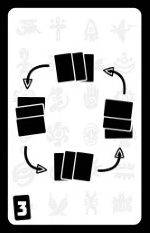 ベット後、各プレイヤーは自分の手札すべてを、矢印の向きに従って別のプレイヤーに渡します。