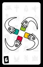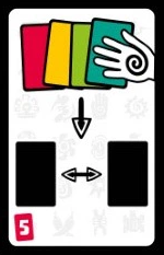 | ❷ | トリックの勝者を決定する 最も大きい数字のカードを出したプレイヤーが、そのトリックを獲得します。 場に出されたカードを受け取り、1トリック獲得したことを示します。 |