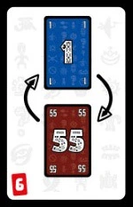 | ❶ | 数字カードの準備 数字カード55枚とジョーカー1枚をすべて混ぜ、数字カードの山札を作ります。 |