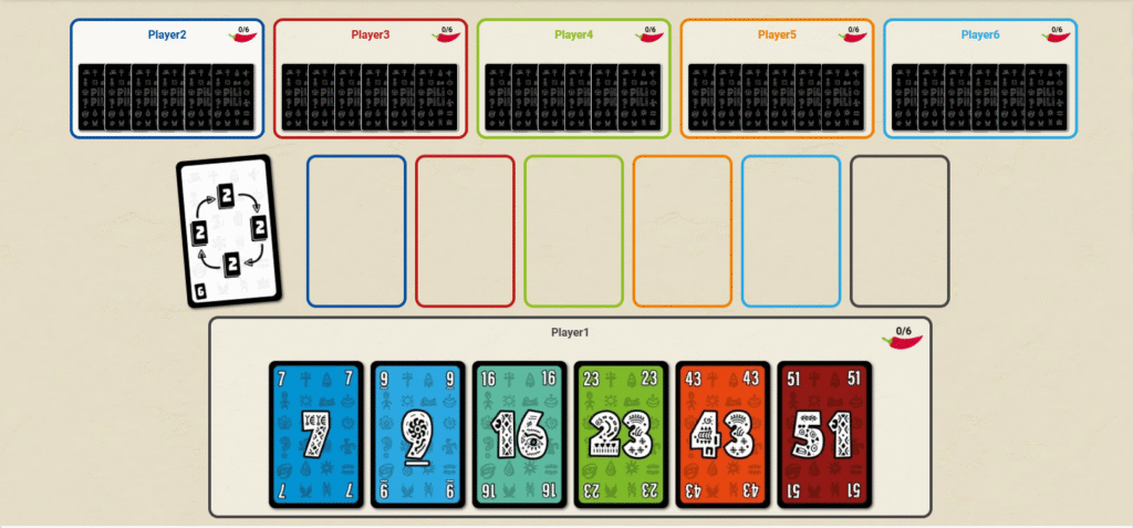 誰かがピリを6枚獲得した時点でゲーム終了し、最もピリが少ないプレイヤーが勝者となります。