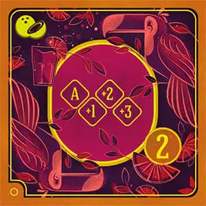 | ❸ | 手番順に応じて、得点を獲得する 手番順に応じた得点の位置に得点コースターの得点トラックにカクテルトークンを1個置きます。 (1番手:1点、2番手:2点、3番手:3点…) |