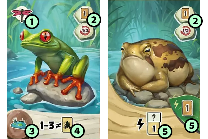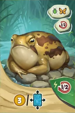 単独行動するカエルで、グループを形成しない。種としては得点せず、ゲーム中に即時効果を実施できる。