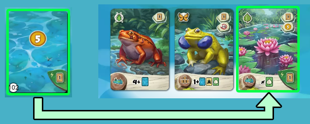 | ・ | 表向き 通常通り、カエルカードまたは生息地カードとして配置します。 |