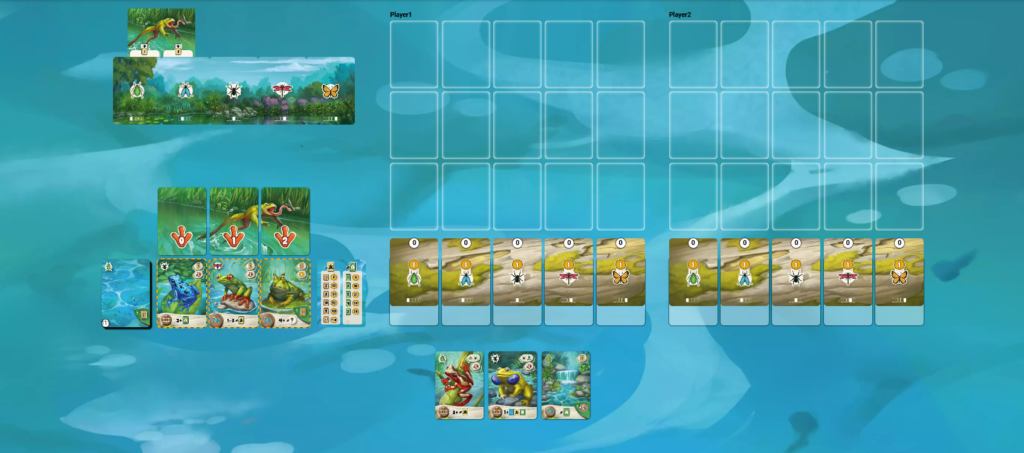 ポンドスケープは、カエルたちのための自然の生息地(池)を作り上げ、最も豊かな生態系を築くことを目指すカード配置ゲームです。