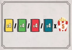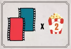 ![]() | 赤の映画1本と青の映画1本のペアごとに、ポップコーンを2個獲得します。 |