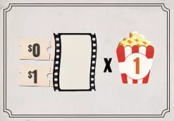 ![]() | $0または$1の映画1本につき、ポップコーンを1個獲得できます。 (開始映画カードはカウントされません) |