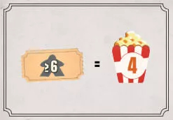 ![]() | 観客数が6以上の場合は、ポップコーンを4個獲得します。 |