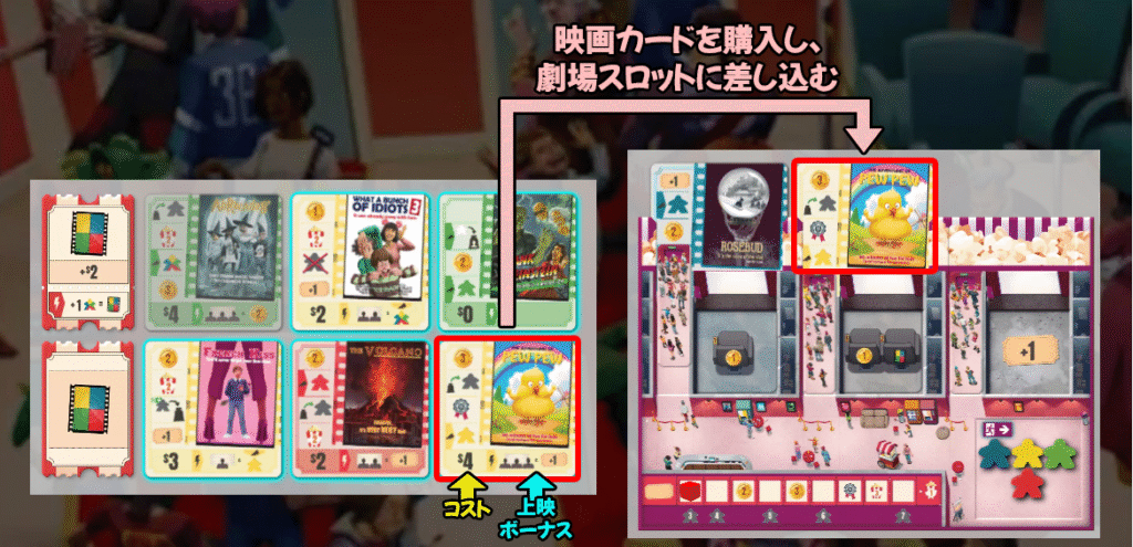 | ・ | 映画カードを1枚購入する ※1手番に1回まで |