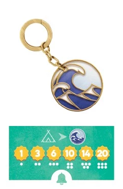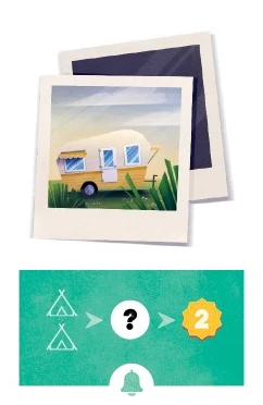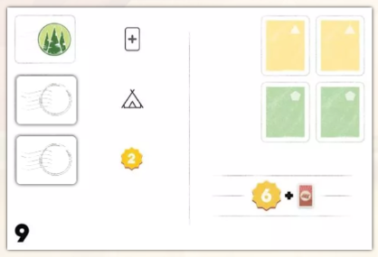 ゲーム終了時:風景のキャンプ場にキャンプが1/2/3/4/5/6つある場合、1/3/6/10/14/20点を獲得する。