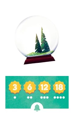 ゲーム終了時:スノードームカードを1/2/3/4枚所持している場合、3/6/12/18点を獲得する。