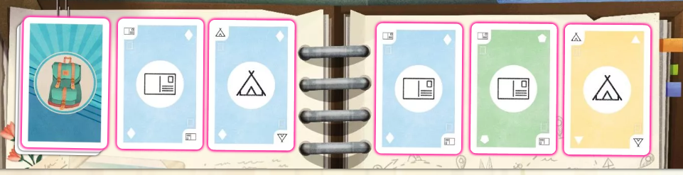 プレイヤーは各地にキャンプを設置し、思い出を綴ったポストカードに切手を貼って大切な人へ送ります。キャンプによるボーナス効果やギフトカードを活用しながら効率よく移動し、得点を重ねていきます。