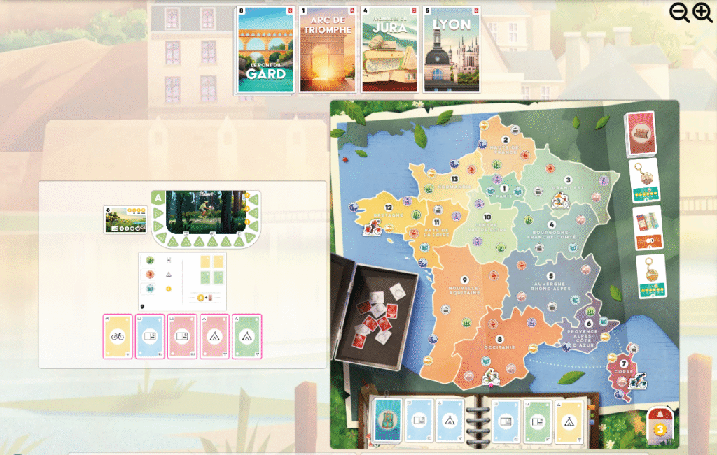 ポストカードは、フランス全13地域を自転車で巡る旅をテーマにしたゲームです。