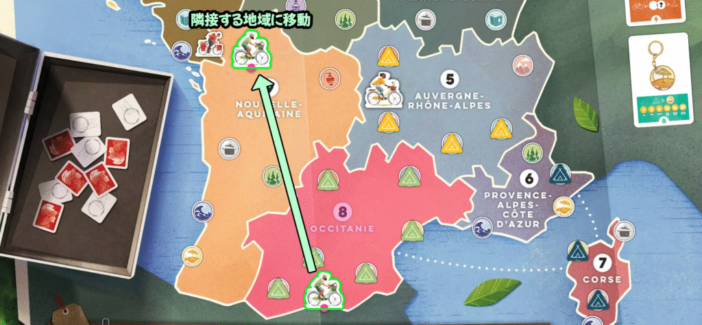 カード左上に示された地域に自転車コマを配置する。余りは箱に戻す。