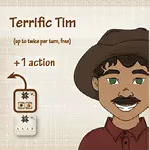 ![]() | テリフィック・ティム 1ターン2回まで(フリーアクション) パターンカード1枚を他プレイヤーに渡すことで、その手番に追加アクション(3〜4アクション)を得る |