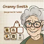 ![]() | グラニー・スミス 1手番1回のみ(1アクション消費) 自分のキルトブロック1枚を裏返してパターンカードとして使用する。 |