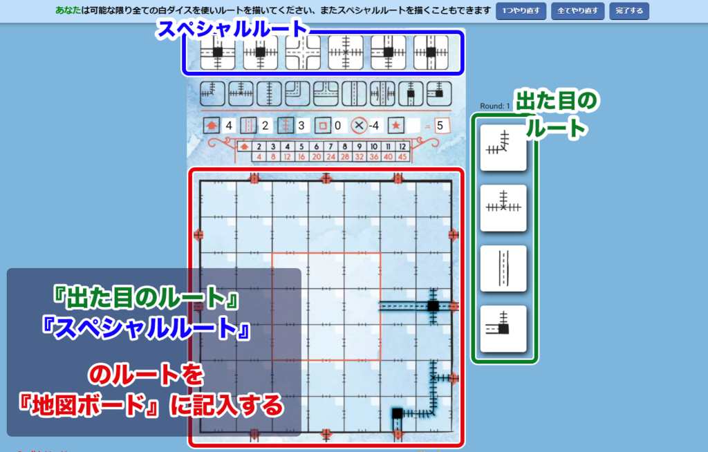 『ルートダイスの出た目』の他に『地図ボード』の上部に書かれている6つの『スペシャルルート』を記入することも可能です。