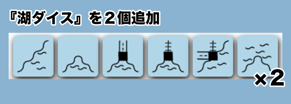 - 通常の『ルートダイス』にプラスで『湖ダイス』を2つ振ります。