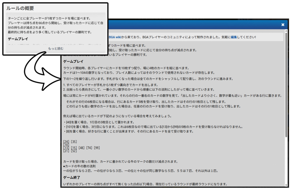 BGAのページ内だけで、次の4つの方法から自分に合った形でルールを確認できるため、初めてのゲームでも安心して準備を整えることができます。