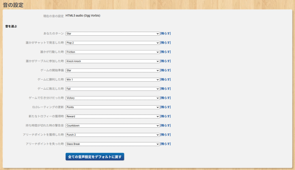 設定画面の『音』のタブを押すことで表示されるBGAで使用音の変更画面から音を鳴らすことができるため、音を鳴らしながら音量の調整をしてみてください。